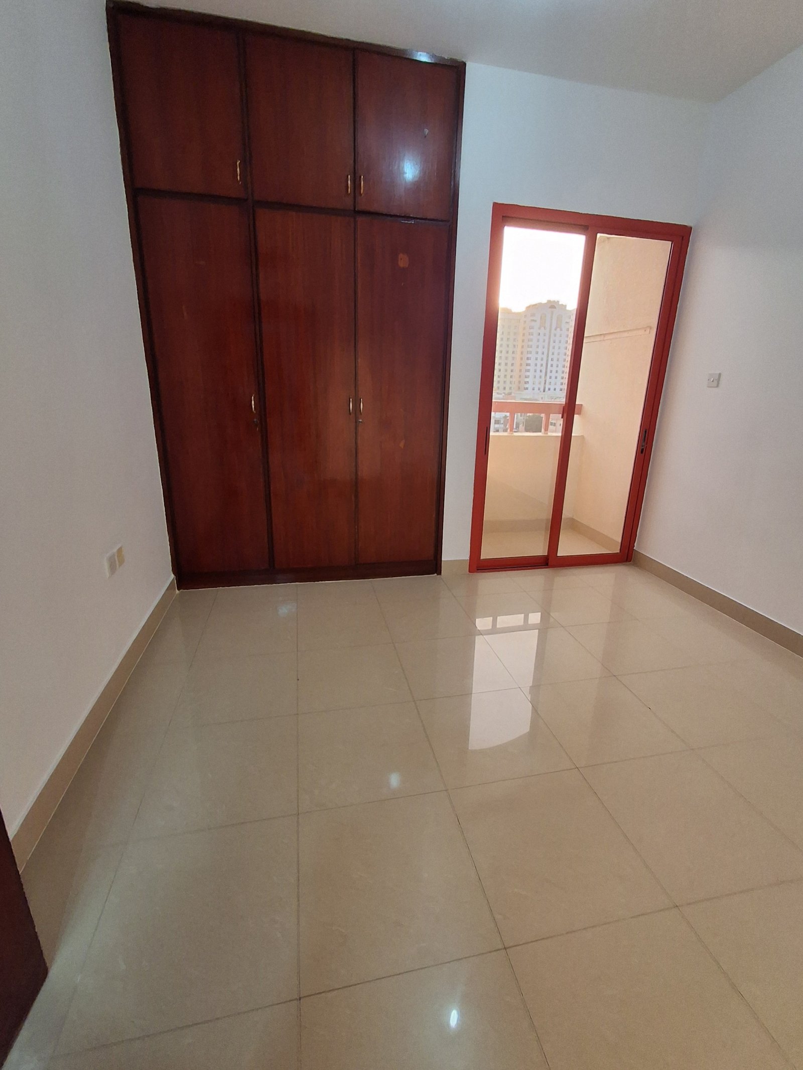 Room with balcony and cabinets