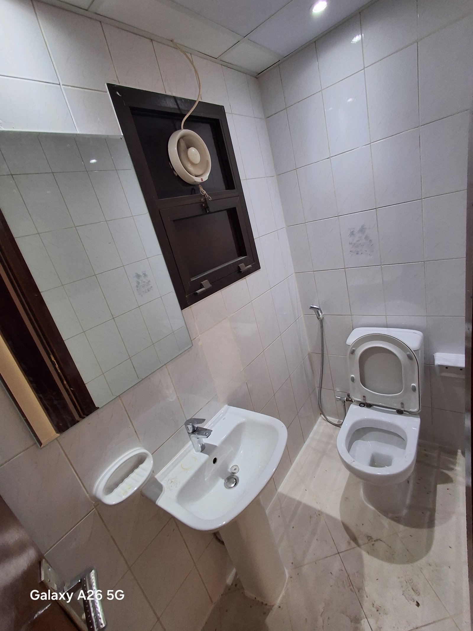 Flat for rent in Abu Dhabi, Al Murour Street. It consists of 2 bedrooms and a living room, finished to a super deluxe standard. It includes a fully equipped kitchen and 2 bathrooms, central gas, and central air conditioning.