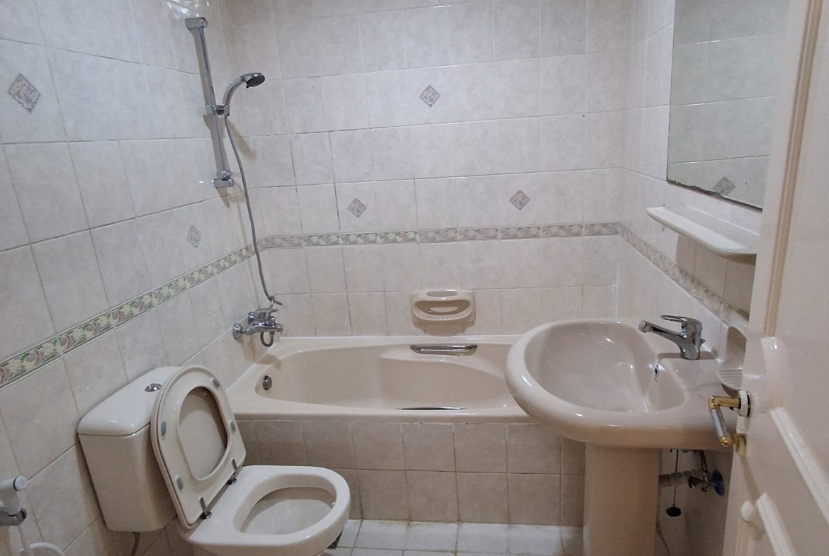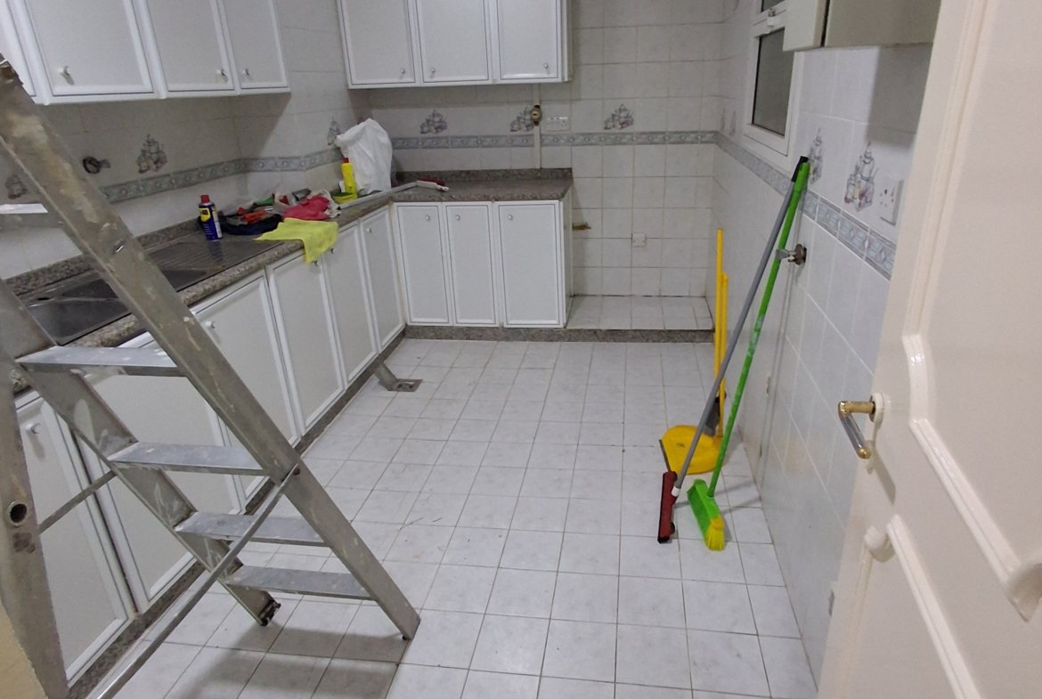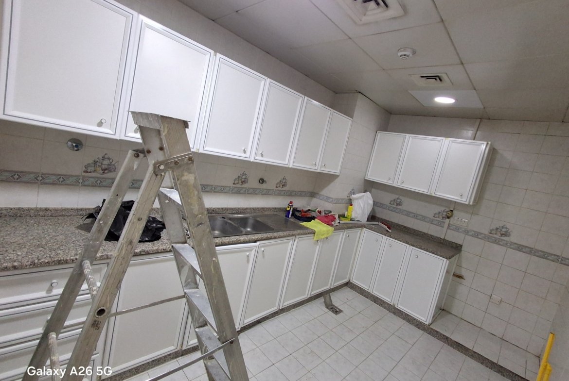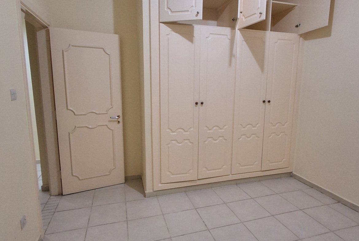 Apartment for rent in Abu Dhabi, Al Nahyan Camp. It consists of 3 bedrooms and a very spacious living room. The master bedroom has cabinets. All bedrooms have cabinets. It features a fully equipped kitchen and 3 bathrooms. Central gas and central air conditioning are included. The annual rent is AED 90,000, payable in installments. For inquiries and reservations, please contact: 0582495573 or 0547879258
